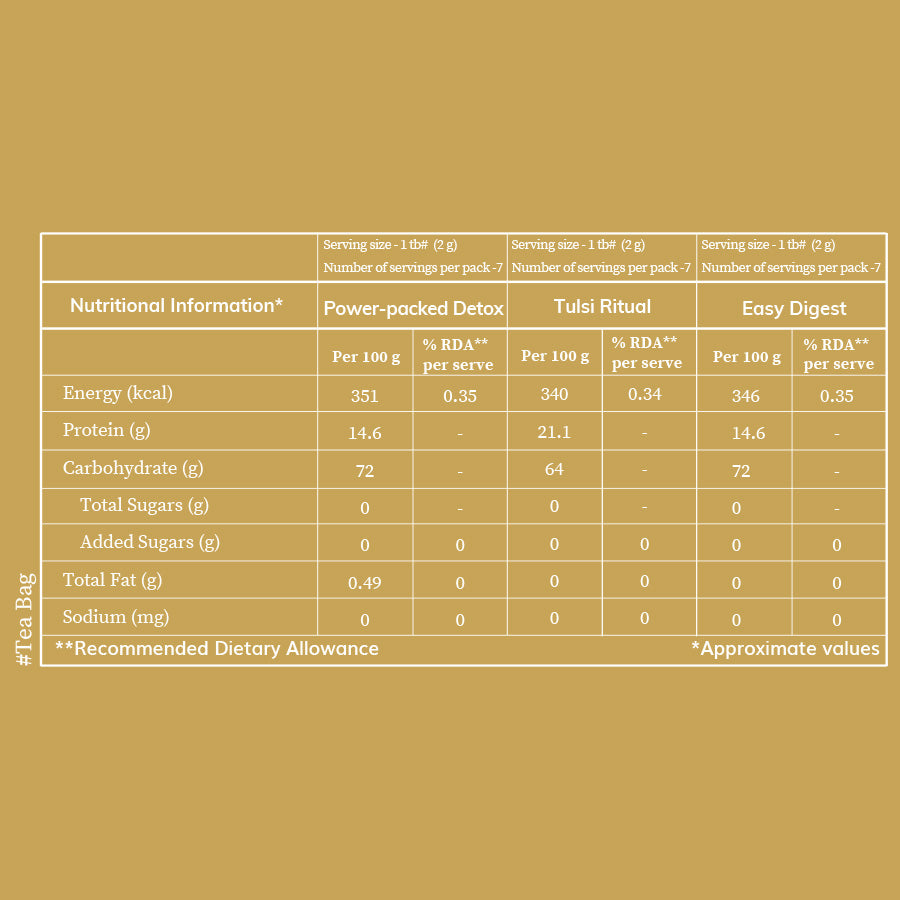 Net weight (Gift box) - 42 g Box Dimensions - ‎29 x 10 x 5.5 cm Total Pcs in Gift Box - Assorted 21 Tea Bags