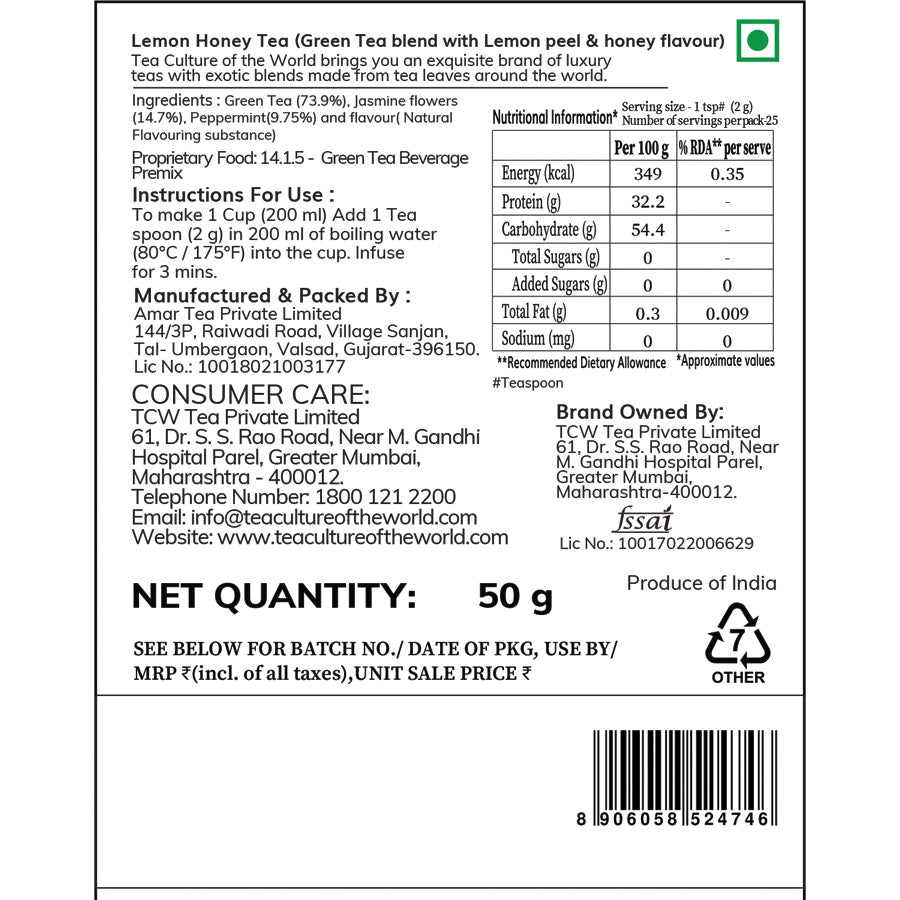 Appearance: Yellow Green Taste: Refreshing flavour with subtle sweetness